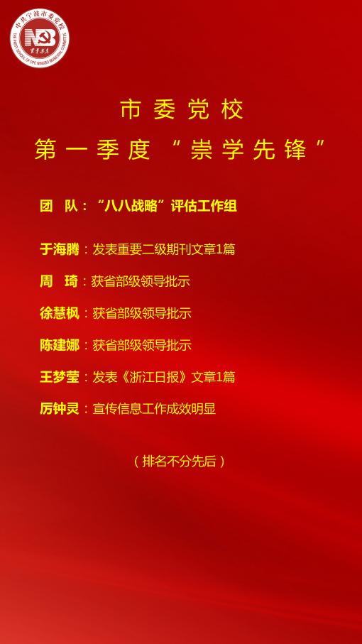市委党校第一季度“崇学先锋”